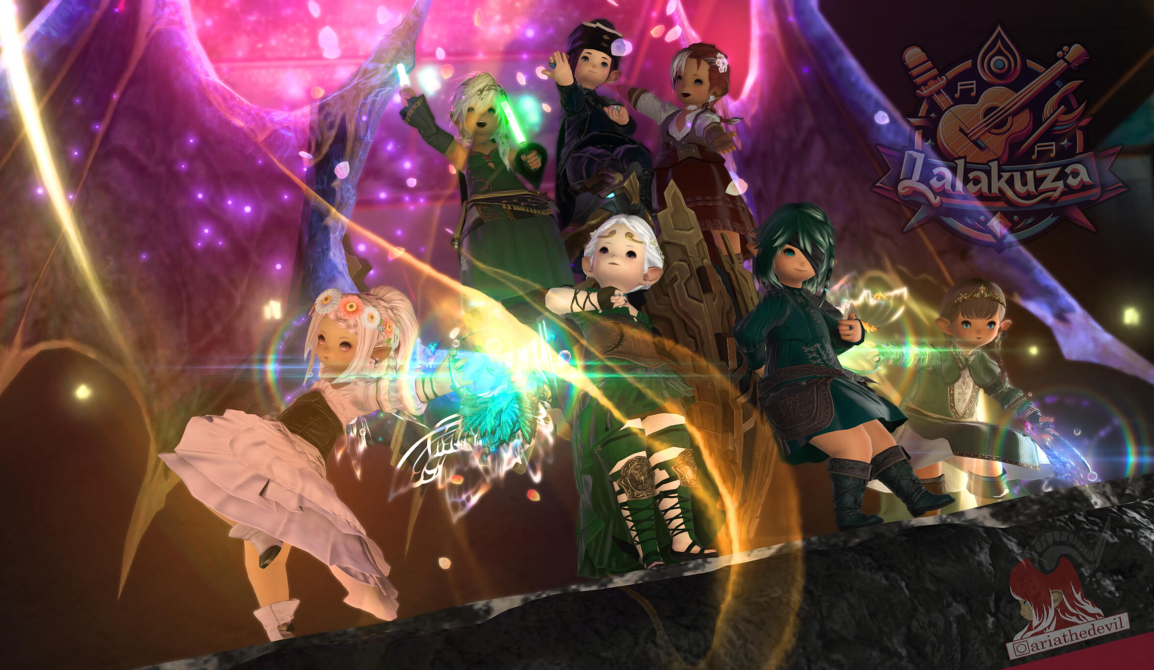 We Lalakuza are more than just a band, we are family and friends addicted to FFXIV and music, and the cosy taverns and lively streets of Eorzea are our home.
