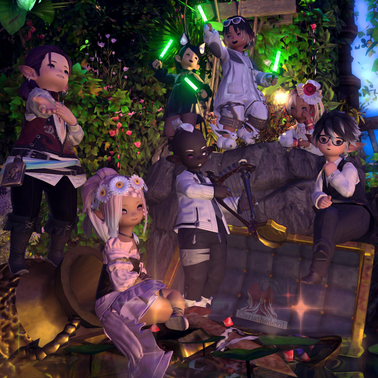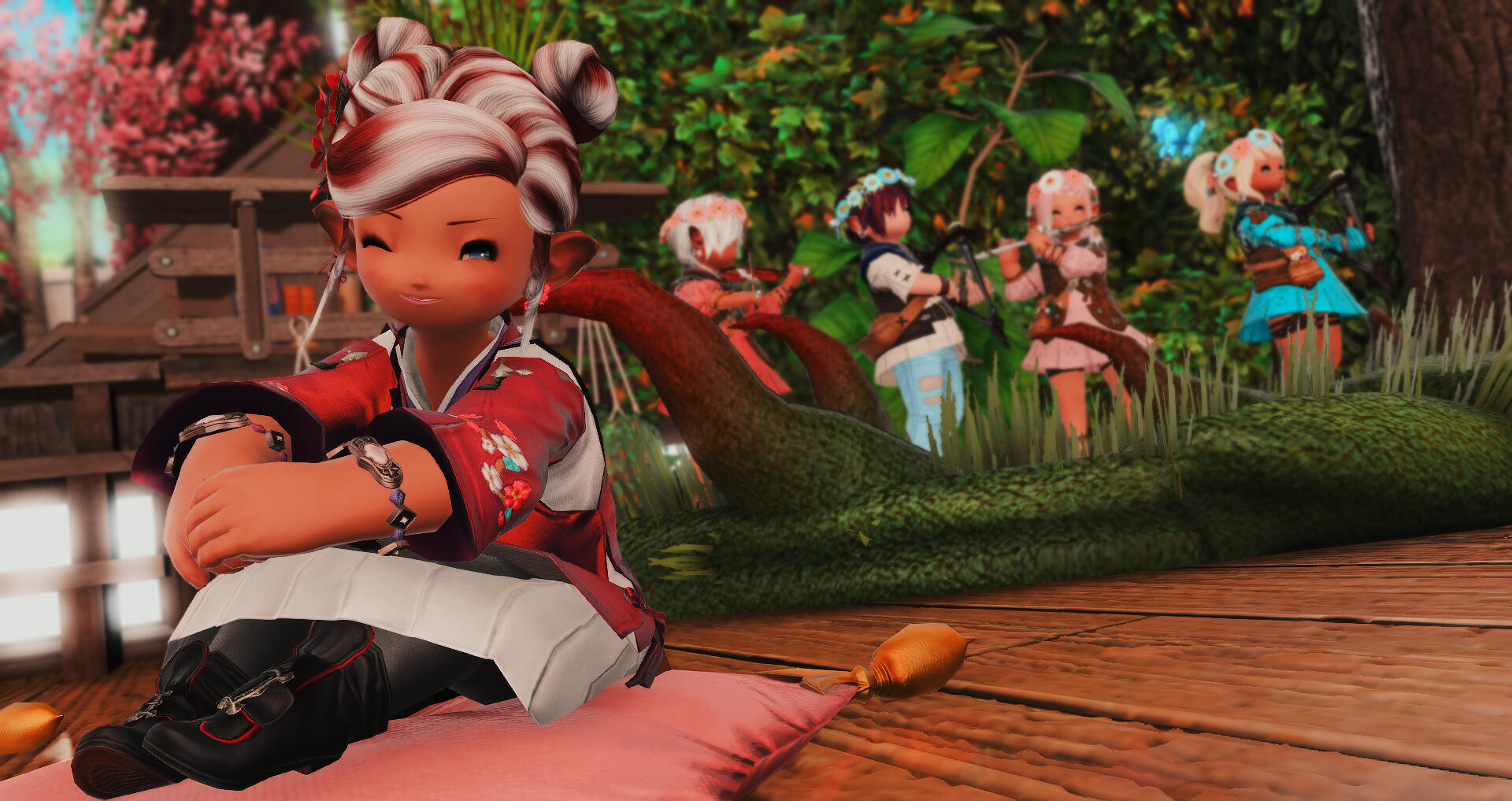 So it's hardly surprising that, when I arrived in Gridania, I chose a career as a bard.I can also often be found in the clubs of Eorzea, either as a guest or as a DJ, but always in company of my exceptionally pretty girls.